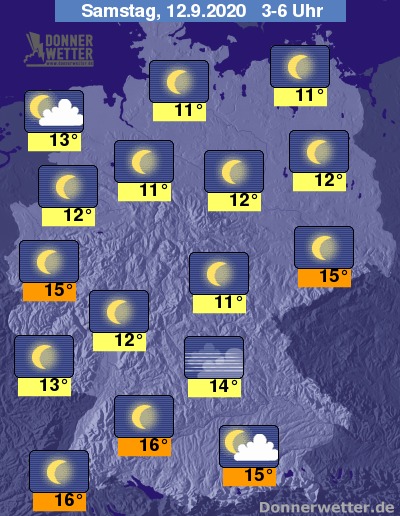 Auch während der zweiten Nachthälfte leuchten verbreitet Mond und Sterne. Lediglich an den Küsten und an den Alpen ziehen einige Wolken vorüber. Diese können an den Alpen auch mal dichter sein und den Blick gen Himmel versperren.