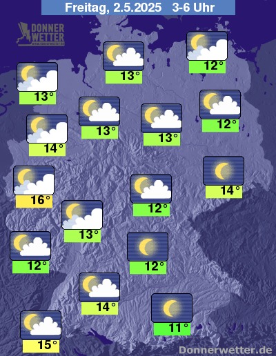 Die Temperaturen gehen in den frühen Morgenstunden zurück auf Werte um 16 bis 11 Grad.