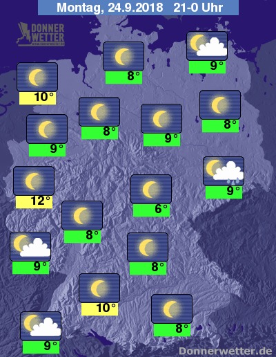 In den späten Abendstunden klart der Himmel dann in weiten Landesteilen auf. Nur im Südwesten sowie entlang der Oder können sich ein paar lockere Wolken halten, die aber nur selten auch mal einen Schauer bringen können.