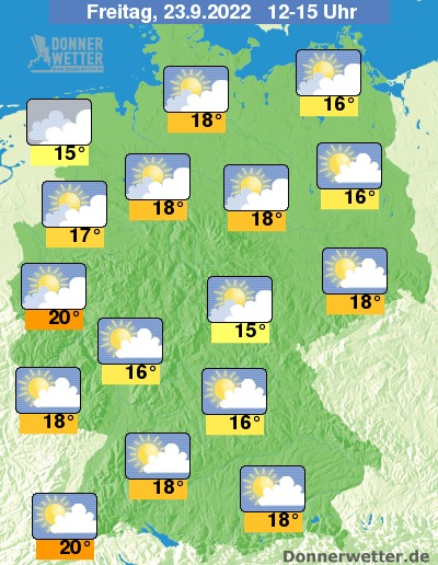 Heute Nachmittag ist es vor allem im Norden und Westen schon oft stark, sonst mehrheitlich noch locker bis aufgelockert bewölkt. Bei Temperaturen von 15 Grad an der Nordsee und rund 20 Grad im Breisgau bleibt es überall trocken.