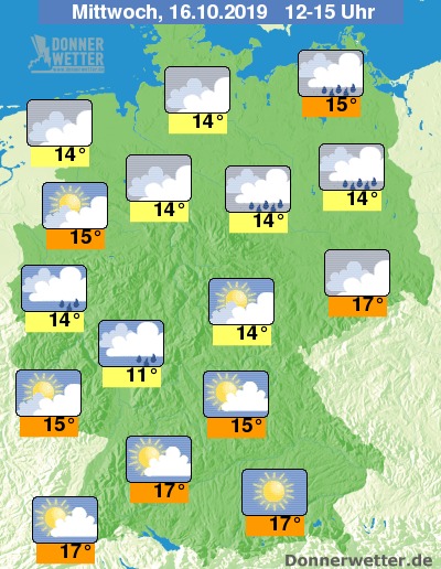 Bis zum Abend entfernt sich der Regen im Nordosten allmählich Richtung Ostsee und Polen, der Regen im Westen greift auf ganz NRW und später auch auf Teile des südwestlichen Niedersachsens über. Im übrigen Bereich bleibt es meistens trocken und auch im Norden bekommt die Wolkendecke stellenweise Lücken.