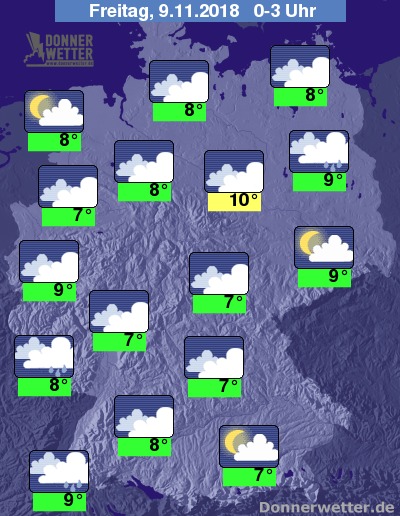 In der Nacht bleibt der Himmel über weiten Landesteilen bedeckt, einzelne Wolkenlücken tun sich zeitweise an den Küsten sowie in der Lausitz auf. Mit einzelnen Schauern muss in der Nacht vor allem entlang der Weser sowie im Südwesten des Landes gerechnet werden.