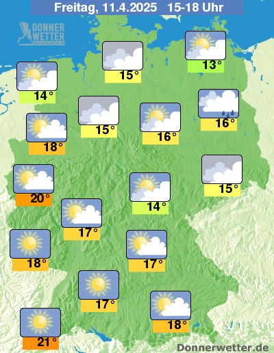 Im Süden und Westen viel Sonne, Höchstwerte um 13 bis 21 Grad.
