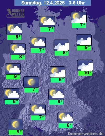 In der Nacht zum Samstag ist es über dem Osten und Nordosten weiterhin wechselnd oder stark bewölkt, es bleibt aber niederschlagsfrei. In den übrigen Landesteilen zeigt sich der Himmel nur gering bewölkt oder es ist sternenklar.