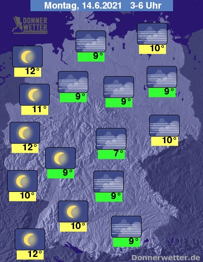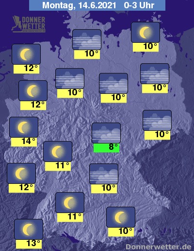 Temperaturrrückgang in der Nacht auf Werte um 12 bis 7 Grad.