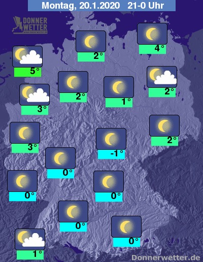 Die Temperaturen sinken auf Werte um -1 bis 0 Grad in der Südhälfte und um 1 bis 5 Grad im Norden.