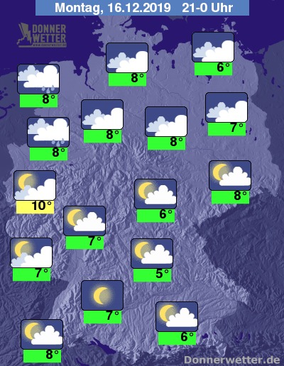 Die Temperaturen sinken bis zum späteren Abend auf Werte um 10 Grad im Rheinland und um 6 Grad am Alpenrand.