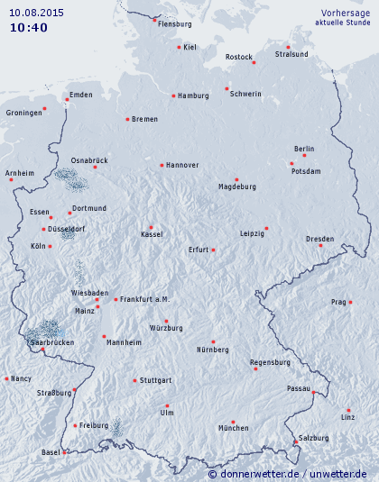 Aktuell haben wir eine Zweiteilung in Deutschland. Der Osten und Süden ist sonnig und warm. Im Westen NRW, Niedersachsen und Rheinland-Pfalz treten Gewitter und Schauer auf. Regensacnner-Analyse von 10.40 Uhr: