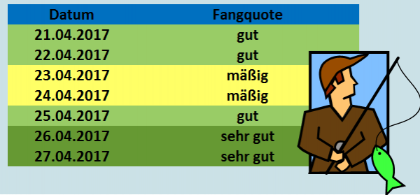 Nicht nur der Einfluss der Neumond-Phase am kommenden Mittwoch sorgt in den nächsten Tagen für gute bis sehr gute Angelbedingungen; auch das leicht wechselhafte Wetter mit höheren Bewölkungsgraden stimmt Hobby- und Berufsangler in der letzten Monatsdekade milde.