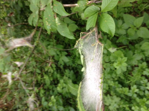 Zu erkennen gibt sich die Motte, genauer gesagt die Raupe, vor allem mit ihrem Gewerk. Viele Bäume und Sträucher sind um diese Jahreszeit herum mit einem dichten weißen Netz, auch Gespinst genannt, eingesponnen.