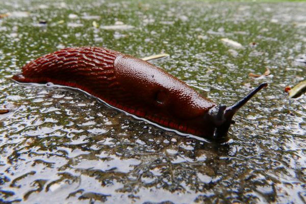 Feuchte Witterung lockt Spanische Wegschnecke in Scharen in unsere Gärten.