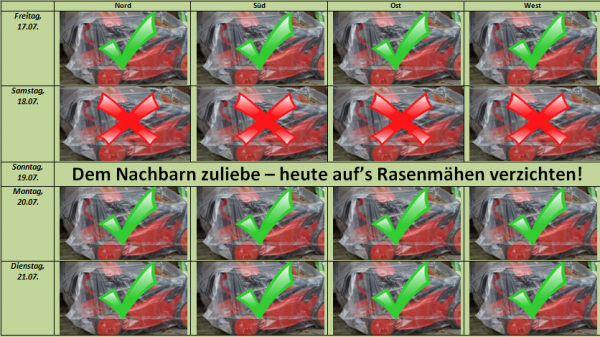 Unser Tipp: Warten Sie mit den Mäharbeiten lieber bis zu Beginn der neuen Woche - dann finden sich nämlich einige Tage mit "Schönwettergarantie"!