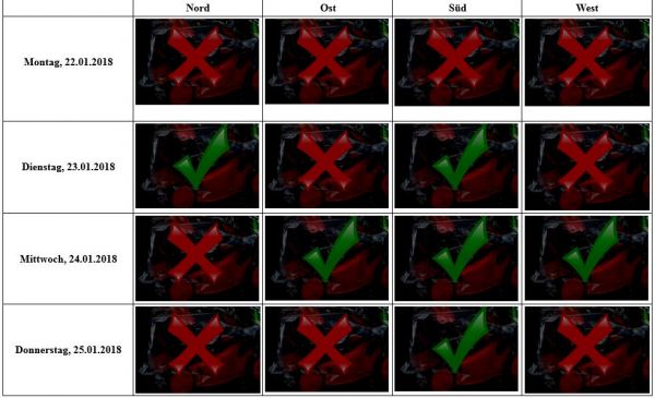 Für die Woche zeichnet sich zwar zum Großteil Hochdruckwetter ab, dabei bleibt es allerdings überwiegend trüb. Besonders am Montag und Donnerstag fällt auch verbreitet Regen, so dass für Außenarbeiten dementsprechend wasserfeste Kleidung angesagt ist.