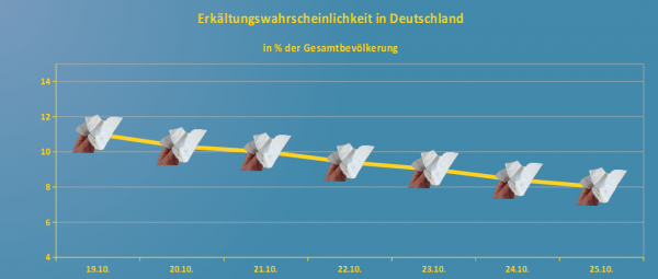 Aufgrund der Herbstferien und des milderen Wetters sinken die Grippe- und Erkältungszahlen in dieser Woche leicht ab. Bitte denken Sie nun an die Auffrischung Ihrer Grippeschutzimpfung.