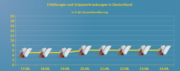 Mit dem August steigt auch die Erkältungsgefahr in den meisten Jahren langsam an - die niedrigste Erkältungs- und Grippegefahr besteht im Juni und Juli.