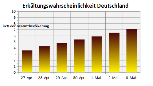 Die einfließende Kaltluft sorgt im Laufe der Woche wieder für einen Anstieg der Erkältungszahlen. Beachten Sie daher wieder verstärkt die entsprechenden Vorbeugemaßnahmen, etwa den Temperaturen angepasste Kleidung und regelmäßige Handhygiene.