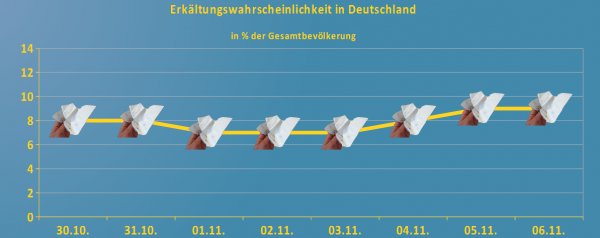 Trotzdem plagen sich in dieser Woche bis zu neun Prozent der Bevölkerung mit einer Erkältungskrankheit herum.