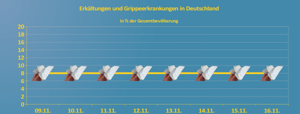 Die für diese Jahreszeit milden Temperaturen und Hochdruckwetter tragen zu einer meist entspannten Erkälltungs- und Grippesitutation im Land bei.