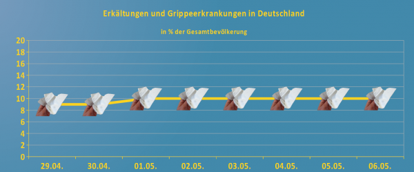 Das milde und weitgehend freundliche Wetter begleitet uns auch über weite Teile dieser Woche. Aber auch die recht wechselnden Wetterbedingungen haben zufolge, dass die Erkältungs- und Gripperate in der Bevölkerung bei rund 10% liegt.