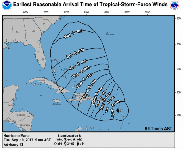 Auf Puerto Rico wird der Hurrikan höchstwahrscheinlich morgen früh treffen und auf die Dominikanische Republik am morgen Abend. Ob der Hurrikan bis dahin an Kraft weiter zunimmt ist nicht wirklich sicher.