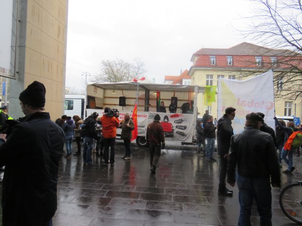 Auf der anderen Seite der Sperrzone fand eine Demo ebenfalls gegen den Gipfel mit rund 400 Teilnehmen statt. Auch hier war neben der Kriege der G20 in Syrien und Jemen auch der Klimawandel ein Schwerpunkt. Besonders ärgert der neue Außenminister der USA unter Trump, der Chef von Exxon war.