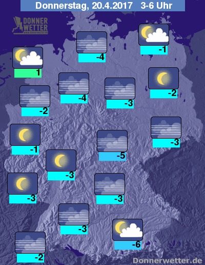 Nach verbreitet frostiger Nacht, wie beispielsweise in Oberstdorf (-10,1 Grad C) und Ramstein in der Pfalz (-8,0 Grad C), gab es für die meisten Deutschen am Donnerstag (20.04.) einen freundlichen Tag mit reichlich Sonnenschein, aber unterkühlten Temperaturen zwischen 8 und 13 Grad C. Lediglich im Bayerischen Wald und an den Alpen fiel bei nur 3 bis 5 Grad C aus kompakten Wolken noch etwas Schnee.