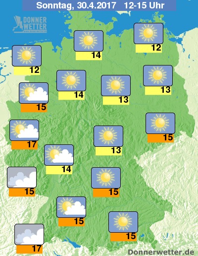 Am Sonntag (30.04.) strahlte die Sonne in ganz Deutschland. Nach örtlichen Bodenfrösten erwärmte sich die Luft bis zum späten Nachmittag auf 12 Grad C im Nordosten und frühlingstaugliche 21 Grad C am Oberrhein.