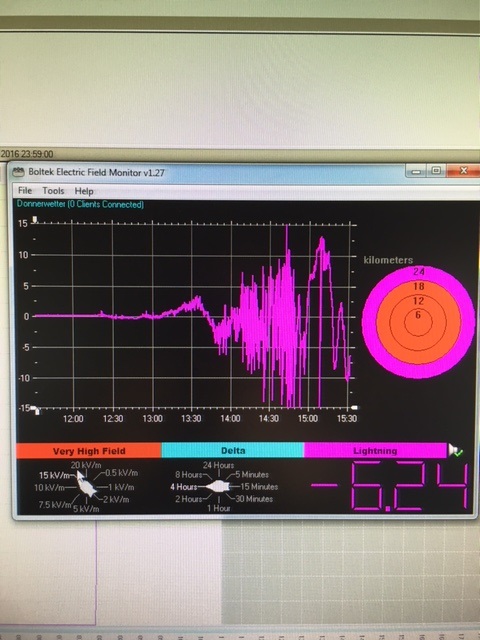 Auch Messungen der elektrischen Feldstärke zeigen eindeutig eine Gewittertätigkeit an