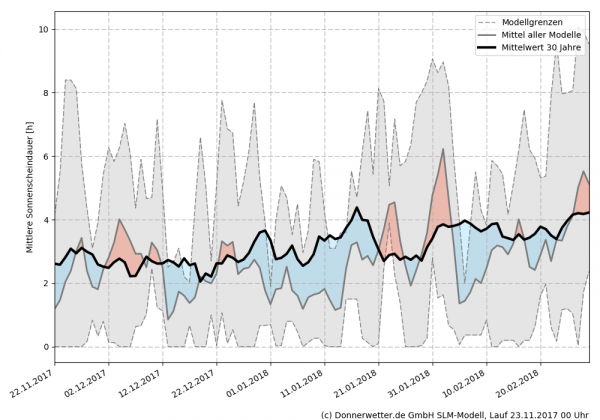 Unsere aktuellen Trendprognosen für Lufttemperatur, Sonnenscheindauer und Niederschlagshöhe.