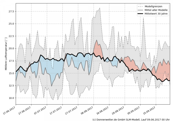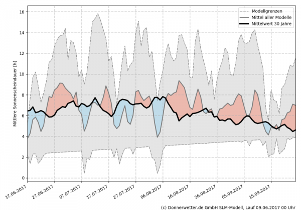Unsere aktuellen Sommerprognosen für Lufttemperatur, Sonnenscheindauer und Niederschlagshöhe.