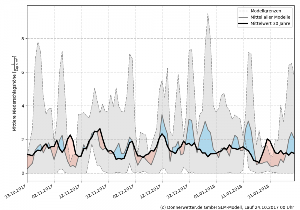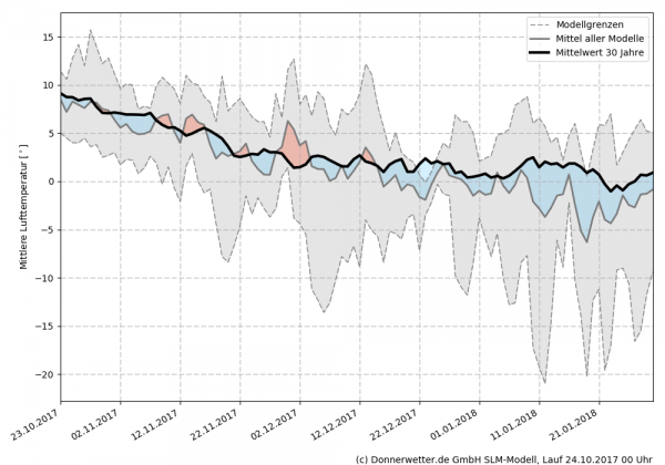 Wie unsere Modelle den Wetterverlauf für den Ostteil des Landes bis Januar 2018 aktuell berechnen, sehen Sie in den drei Grafiken.