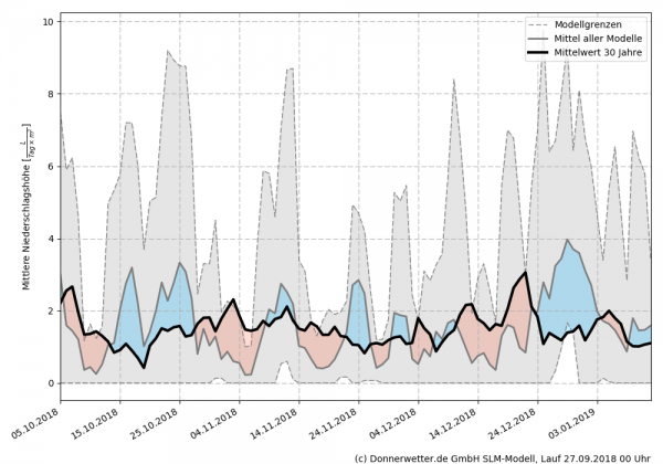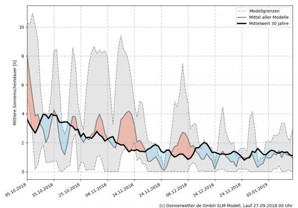 Die nächsten Wochen werden warm - da berechnet derzeit das aktuelle Langfristmodell für den Westen. Vor allem in der zweiten Oktoberhälfte sind allerdings immer wieder Schauer zu erwarten und die Sonne ist seltener mit von der Partie.