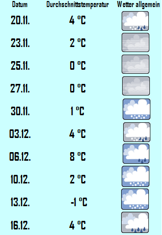Anfang Dezemner deutet sich nach jetzigen Modellrechnungen eine kurze milde Phase an, danach erhält wieder wechselhaftes und winterliches Wetter Einzug in Deutschland.