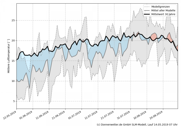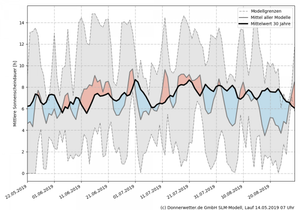 Die aktuellen Langfristmodelle gehen für den Süden zur Zeit von einem zu kühlen Frühsommerverlauf aus. Es ist zeitweise und zu nass und bis Mitte kommenden Monats zeigt sich die Sonne jahreszeitlich gesehen zu selten.