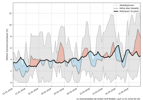 Auf ein rasches Frühlingserwachen braucht der Süden, angesichts des aktuellen Temperaturmodells, wohl erst einmal nicht hoffen. In den nächsten Wochen liegen die zu erwartenden mittleren Lufttemperaturen unter den langjährigen Mittelwerten. Weniger eindeutig ist der Trend aktuell bei Niederschlagsmenge und Sonnenscheindauer - zu trockene / nass und sonnige bzw. sonnenarme Wetterphasen gibt es im stetigen Wechsel.