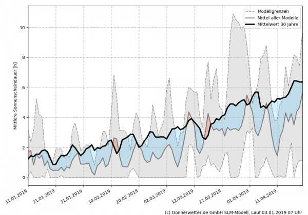 Unsere aktuellen Langfristmodelle zeigen in den kommenden Wochen eine Wetterlage mit einer vergleichsweise sehr geringen Sonnenscheindauer. Die Temperaturen liegen außerdem deutlich unter dem langjährigen Mittel.