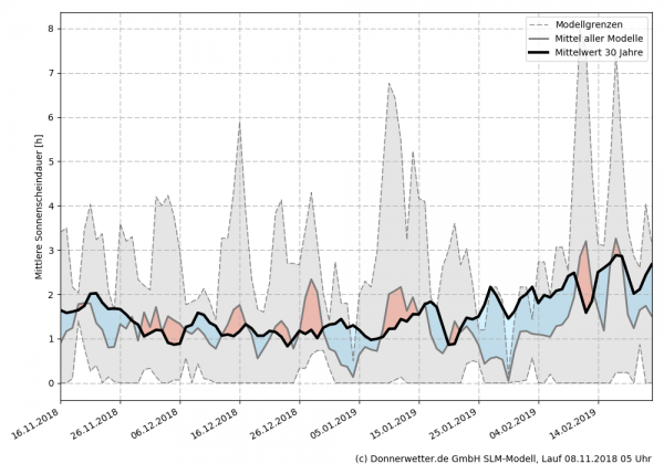 Bis weit in den nächsten Monat hinein bewegen sich die mittleren Lufttemperaturen laut aktueller Berechnungen auf jahreszeitlich zu hohem Niveau. Im Norden überwiegen zudem die zu trockenen Wetterphasen, die Anzahl der zu erwartenden Sonnenstunden liegt in den kommenden Wochen insgesamt im Durchschnitt.