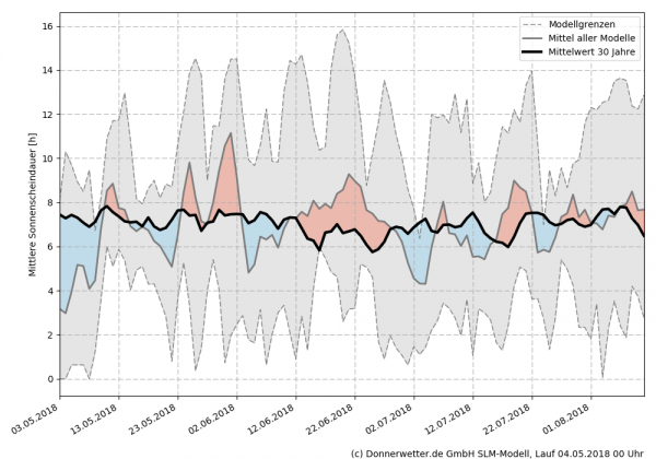 Unsere aktuellen Langfristprognosen für Lufttemperatur, Sonnenscheindauer und Niederschlagshöhe.