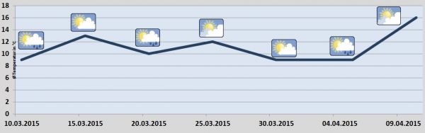 Von seinen Niederschlagsmengen wird der März in diesem Jahr normal oder nur leicht zu trocken (0 bis -10 %) ausfallen, bei den Temperaturen erwarten wir einen leicht zu milden Trend (+1 Grad C).