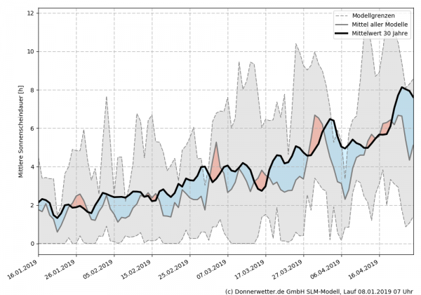 Unsere aktuellen Langfristprognosen für Lufttemperatur, Sonnenscheindauer und Niederschlagshöhe.