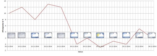 Der Dezember zeichnet sich in seinem Temperaturschnitt nach jetzigem Stand als eher durchschnittlich ab. Dafür könnte der letzte Monat in diesem Jahr aber überdurchschnittlich viel Niederschlag im Gepäck haben.