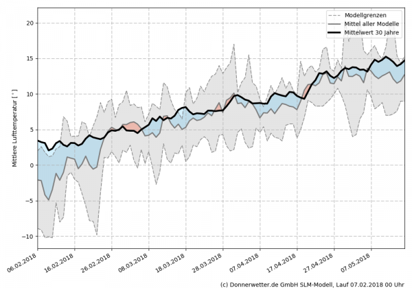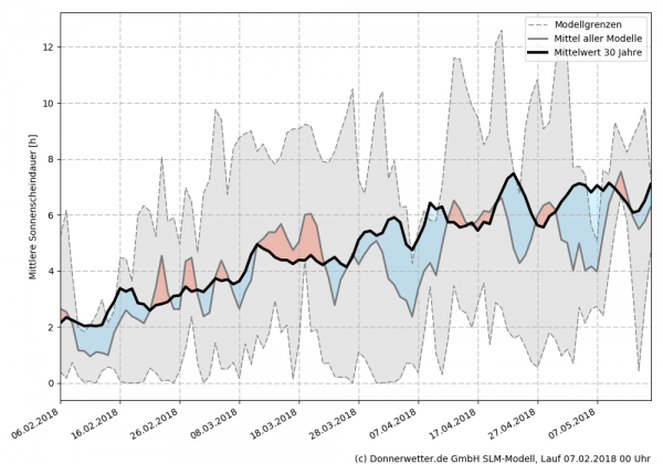Unsere aktuellen Langfristprognosen für Lufttemperatur, Sonnenscheindauer und Niederschlagshöhe.
