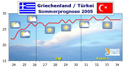 Die Donnerwetter.de-Langfristprognosen basieren auf speziellen Wetterstatistiken mit unterschiedlichen Wahrscheinlichkeiten. Insgesamt hat die Prognose eine Aussagekraft von etwa 70 Prozent. Die Perioden mit den verschiedenen Wetterphasen können aber zeitlich anders verlaufen, so dass in diesen Zeiträumen die Fehlerwahrscheinlichkeit höher liegt.
