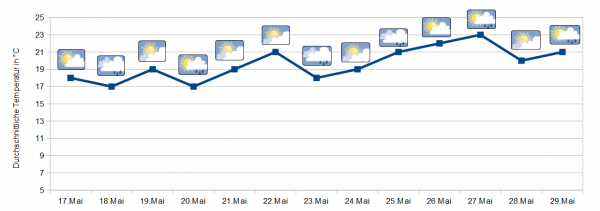 Und auch abseits der Temperaturen kann im restlichen Mai von "Bilderbuchwetter" wohl eher selten die Rede sein: Wolkige Phasen, die zum Teil mit Schauern einhergehen, überwiegen in der zweiten Monatshälfte.