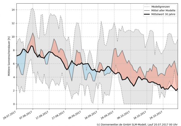 Die zu erwartenden Niederschläge geben zwar keinen Anlass zu Beunruhigung, weder große Trockenheit noch lange verregnete Phasen sind in Sichtweite, die mittleren Lufttemperaturen zeigen sich bis Mitte August allerdings eher verhalten. Im Gegenzug dazu sind immer wieder auch längere sonnige Abschnitte zu erwarten. Sehr gute Wetteraussichten bestehen für den Westen aus aktueller Sicht weiterhin für den Spätsommer und Frühherbst.