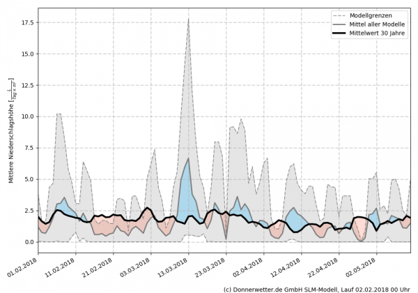 Den zu kühlen Temperaturen in den kommenden Wochen stehen unterdurchschnittliche Regenmengen gegenüber. Die meisten Sonnenstunden gibt es für den Norden laut aktueller Modellrechnungen zwischen Ende Februar und Anfang März.