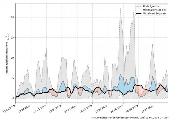 Unsere aktuellen Langfristprognosen für Lufttemperatur, Sonnenscheindauer und Niederschlagshöhe.