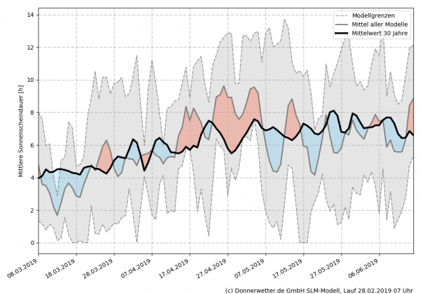 Unsere aktuellen Langfristprognosen für Lufttemperatur, Sonnenscheindauer und Niederschlagshöhe.