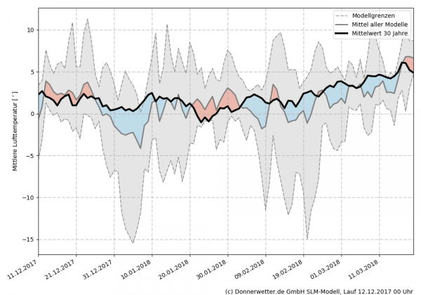 Nach einer milderen Wetterphase in der letzten Monatsdekade gehen die Temperaturen zu Beginn des neuen Jahres im Osten wieder merklich in den Keller. Kühler als normal bleibt es dann laut aktueller Berechnungen bis Ende Januar. Die zu erwartenden Niederschlagssummen sowie die Sonnenscheindauer liegen in diesem Zeitraum meist unter dem langjährigen Durchschnitt.