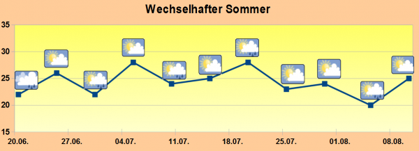 Tendenziell, so berechnen es die aktuellen Wettermodelle, geben die nächsten Sommermonate ein zwar leicht zu warmes Bild ab; dafür müssen wir uns aber auf wechselhaftes Wetter einstellen, bei dem sich Regen- und Sonnentage in etwa die Waage halten.